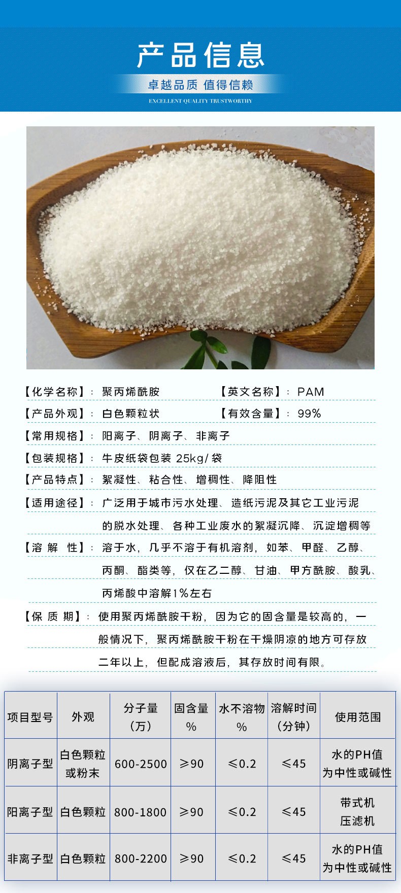 陽離子聚丙烯酰胺、陰離子聚丙烯酰胺、非離子聚丙烯酰胺等,不管什么行業(yè)的什么水質(zhì),選對型號(hào)是很關(guān)鍵的。